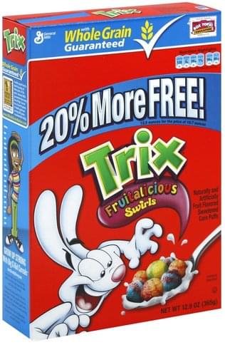 Trix Fruitalicious Swirls Cereal, 12.9 Oz - Kroger Shop for Trix Fruitalicious Swirls Cereal (12.9 Oz) at Kroger. Find quality breakfast products to add to your Shopping List or order online for Delivery or Pickup.